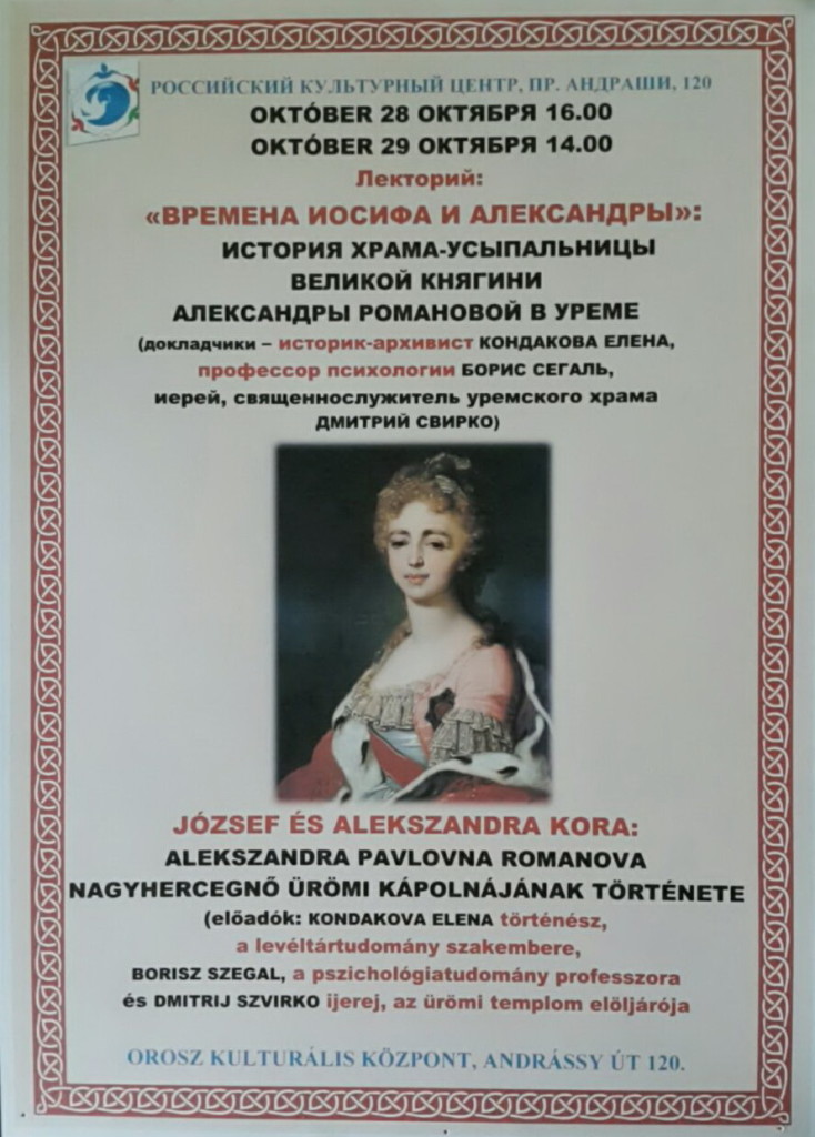 28 октября в Русском культурном центре прошло мероприятие имеющеее немаловажное значение для нашего храма: — лекторий «Времена Иосифа и Александры»