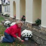 Много работы и на прилегающем кладбище. До глубокой осени и около памятников, и в парке цветы: летом цветут «анютины глазки» и гвоздики, осенью – хризантемы и герани.
