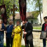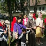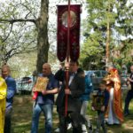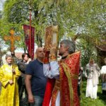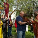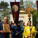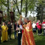 После Божественной литургии и причастия все пошли крестным ходом вокруг храма. У всех Пасхальное ликование: