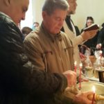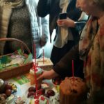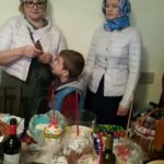 7 апреля в Великую субботу в трапезной храма иерей Дмитрий освятил куличи и пасхальные яства прихожан.