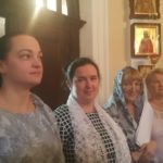 Во время Божественной литургии всегда поётся тропарь и величание небесной покровительнице храма: