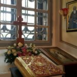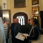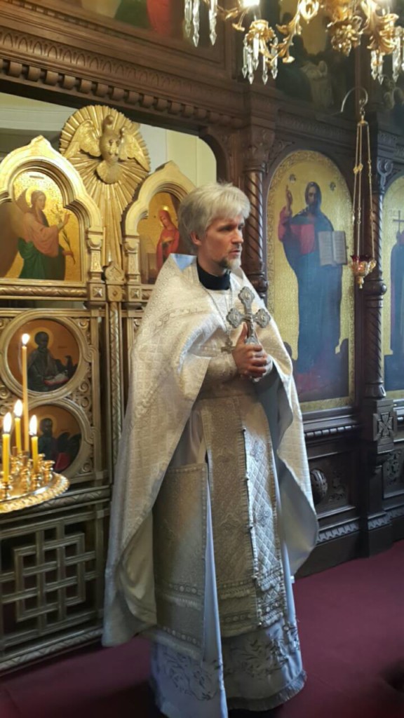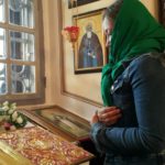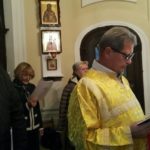 В храме для поклонения был вынесен из алтаря Крест. Все могли преклонить колени и приложиться ко Кресту.